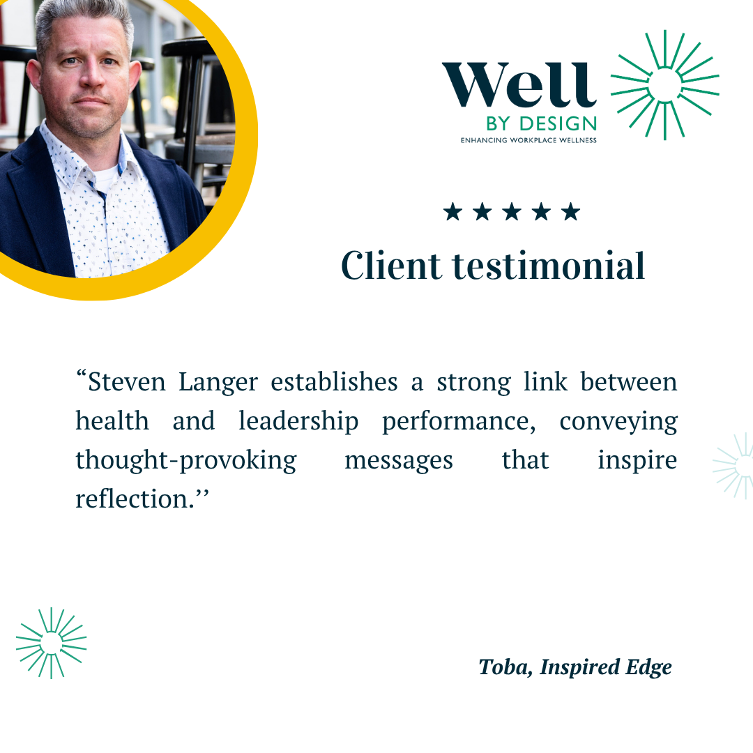 As a trusted international keynote and TEDx speaker, Steven is known for cutting through the noise and shifting the mindset on wellness. He combines compelling stories, thought-provoking data, and practical insight to inspire real change.